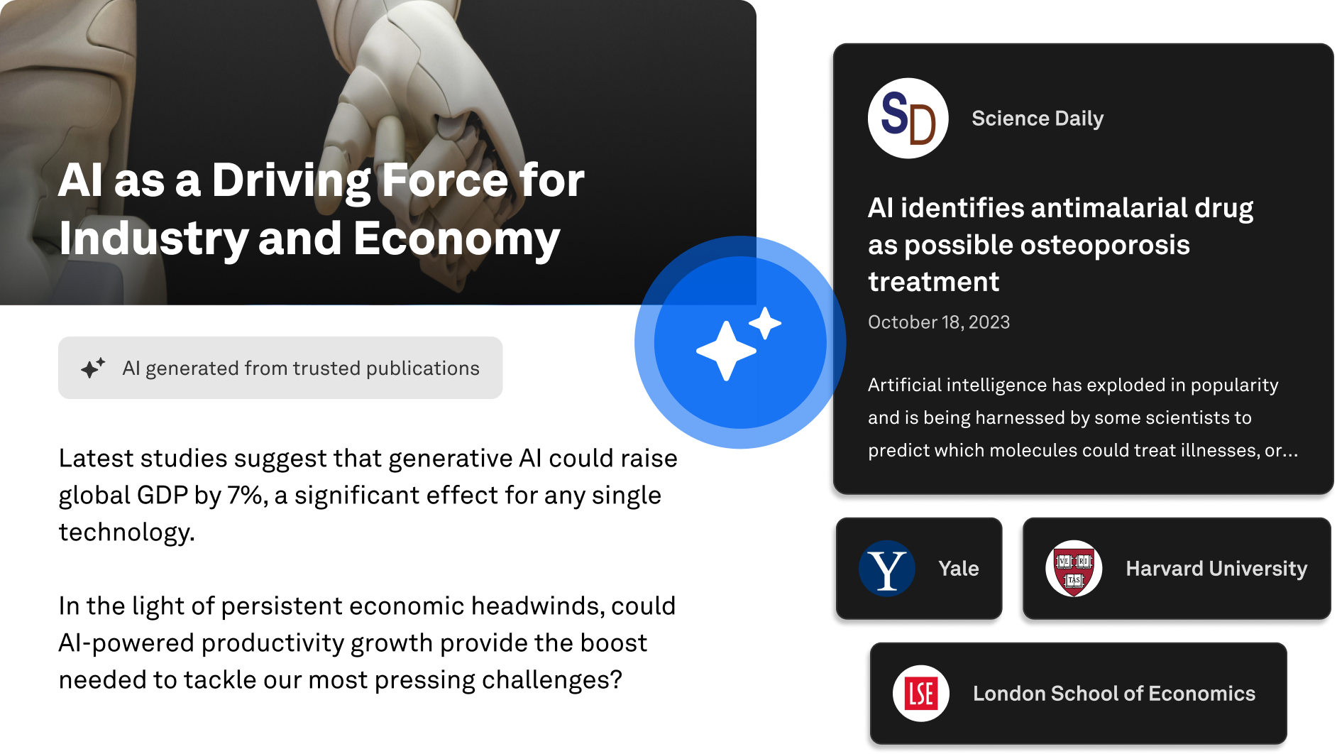 Create intelligence collections, integrate your own content and collaborate with colleagues and other professionals to share contextual knowledge on topics that matter most to you.