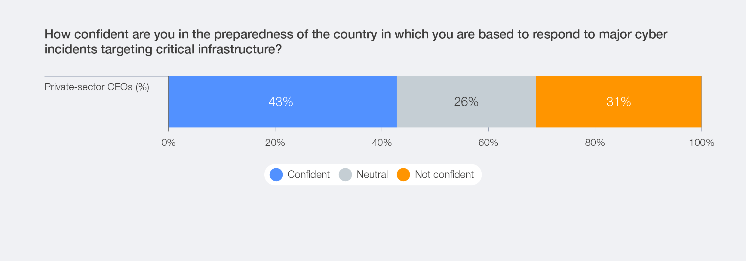 Less than 45% of all CEOs from the private sector are confident in their country’s ability to respond to major cyber incidents targeting critical infrastructure.