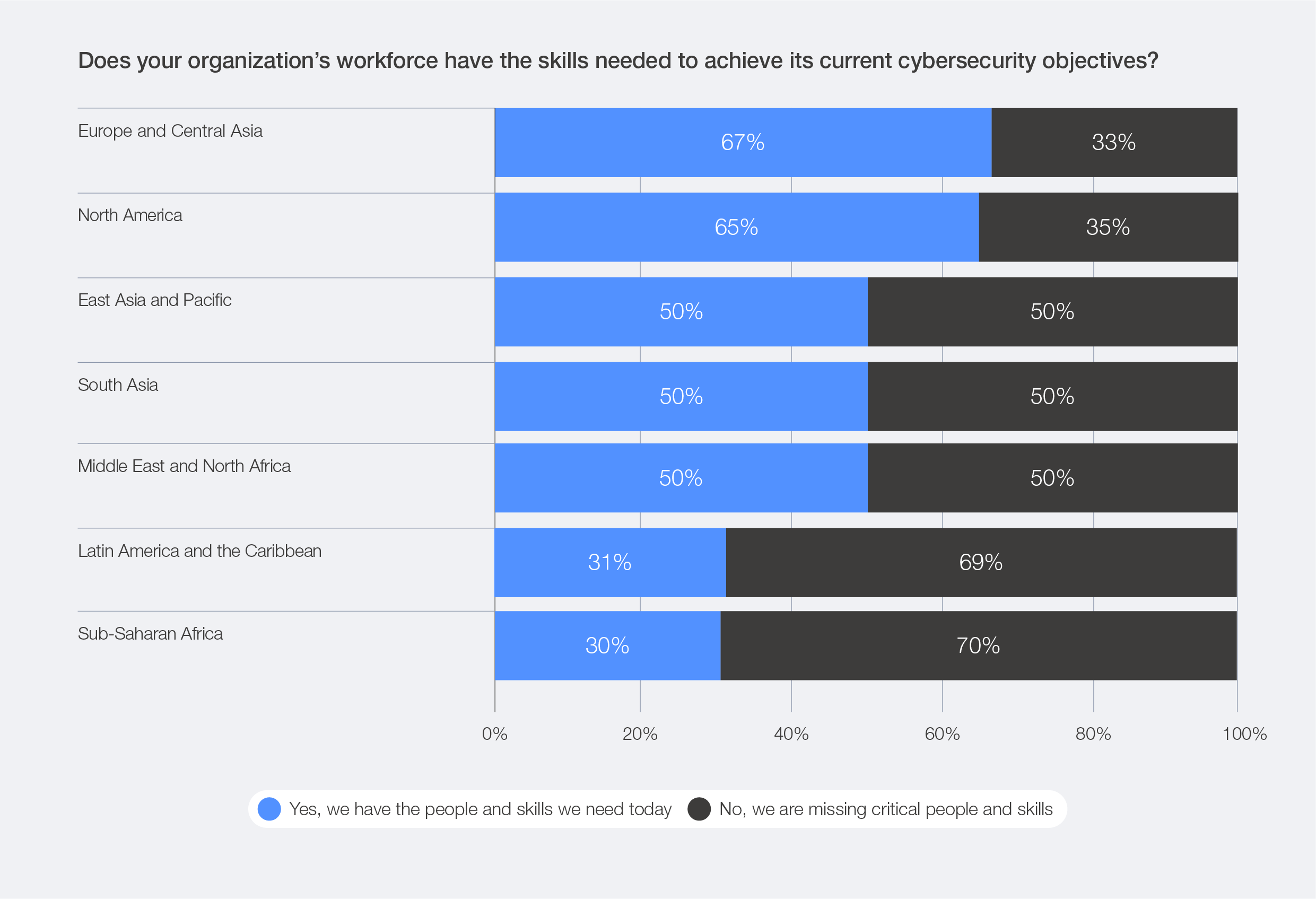 Figure 6: CEOs' views on whether their organization's workforce has the skills for current cybersecurity objectives, by region