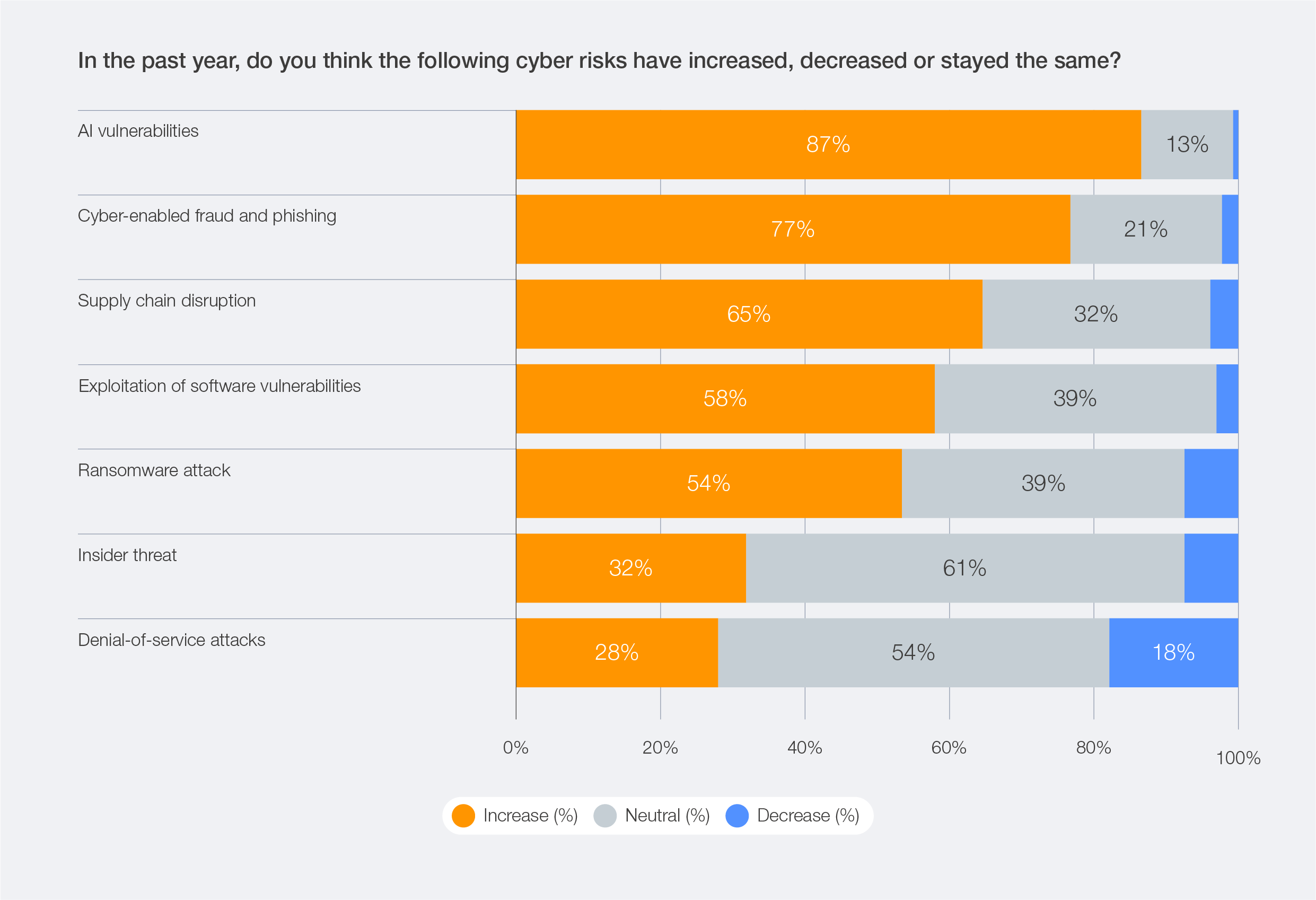 Figure 8: Perception of increase or decrease in cyber risks over the past year