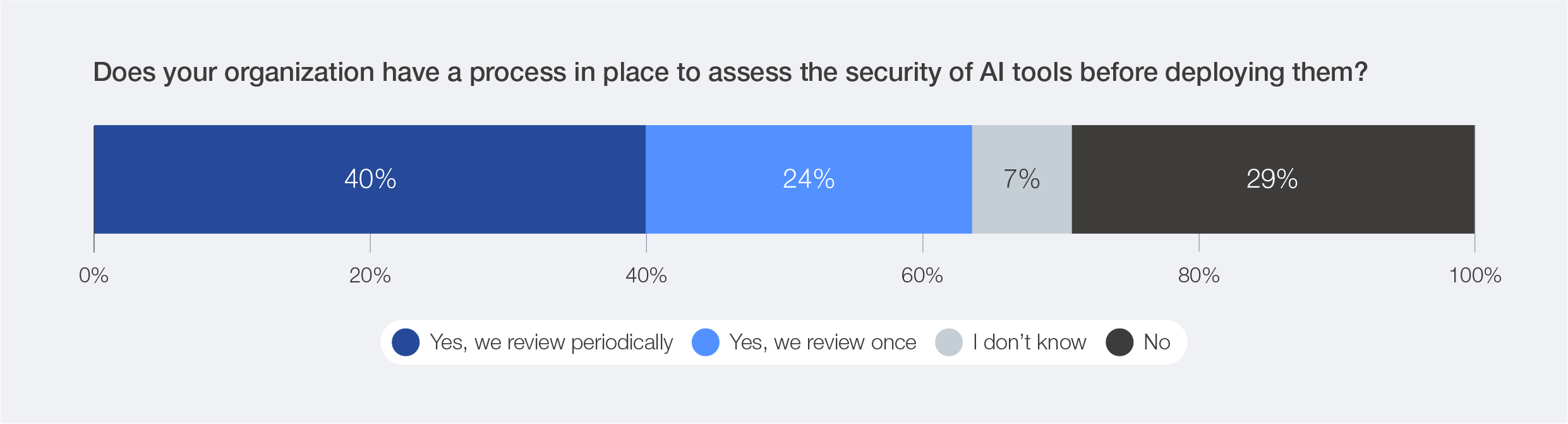 Figure 10: Percentage of organizations with processes in place to assess AI security