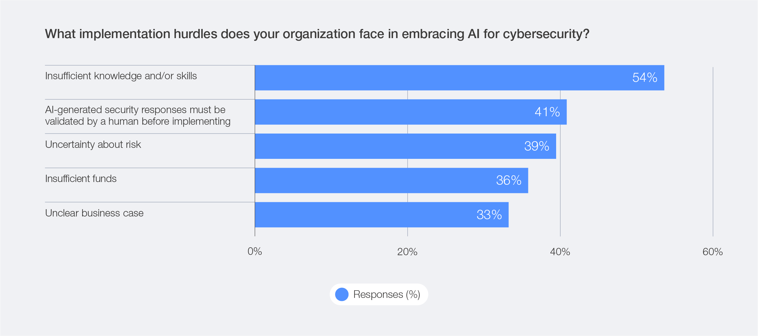 More than half of all respondents (54%) identified limited knowledge and skills as a key obstacle to adopting AI-driven solutions for cybersecurity.