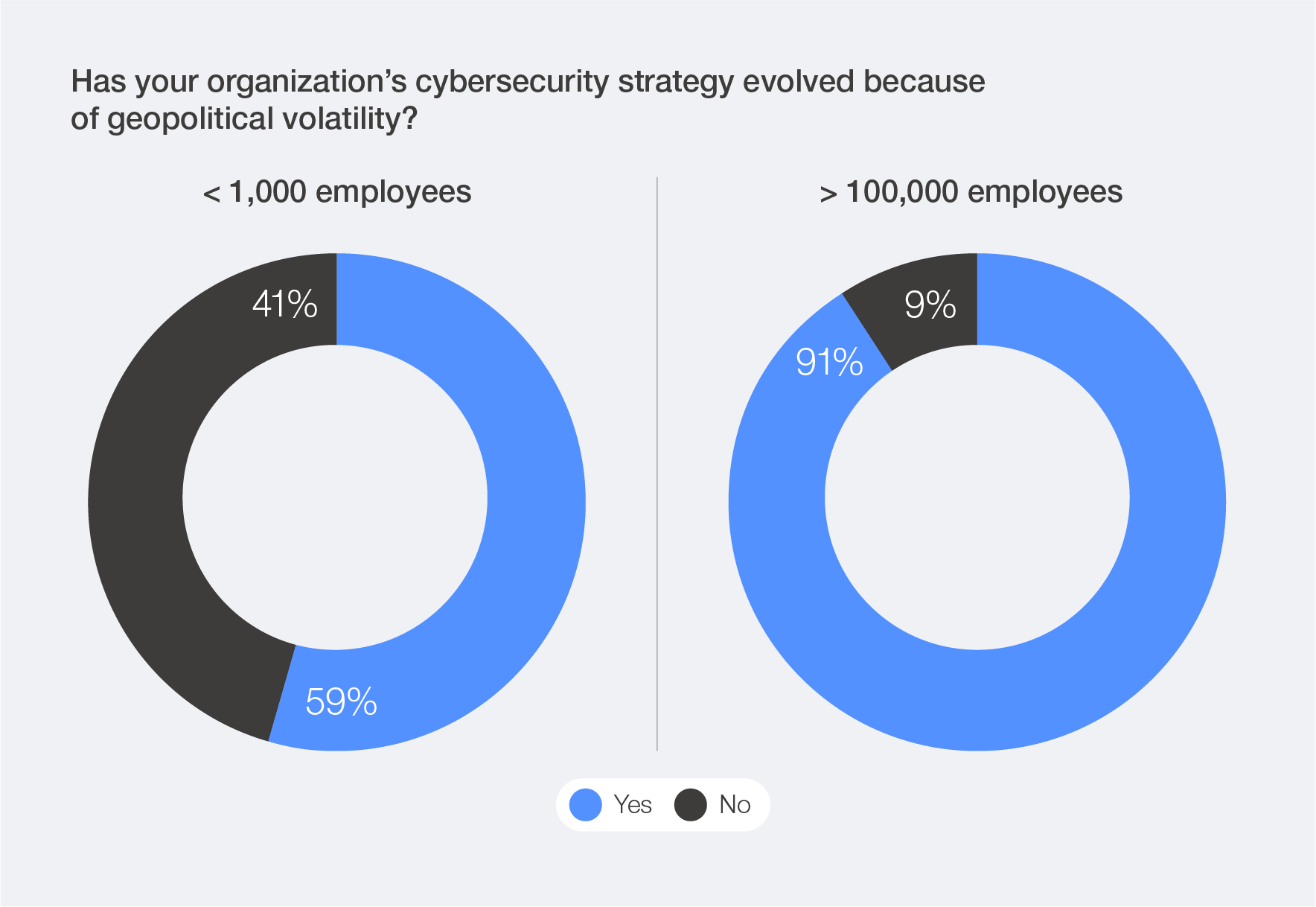 Notably, 91% of the largest organizations1 have changed their cybersecurity strategies due to geopolitical volatility.