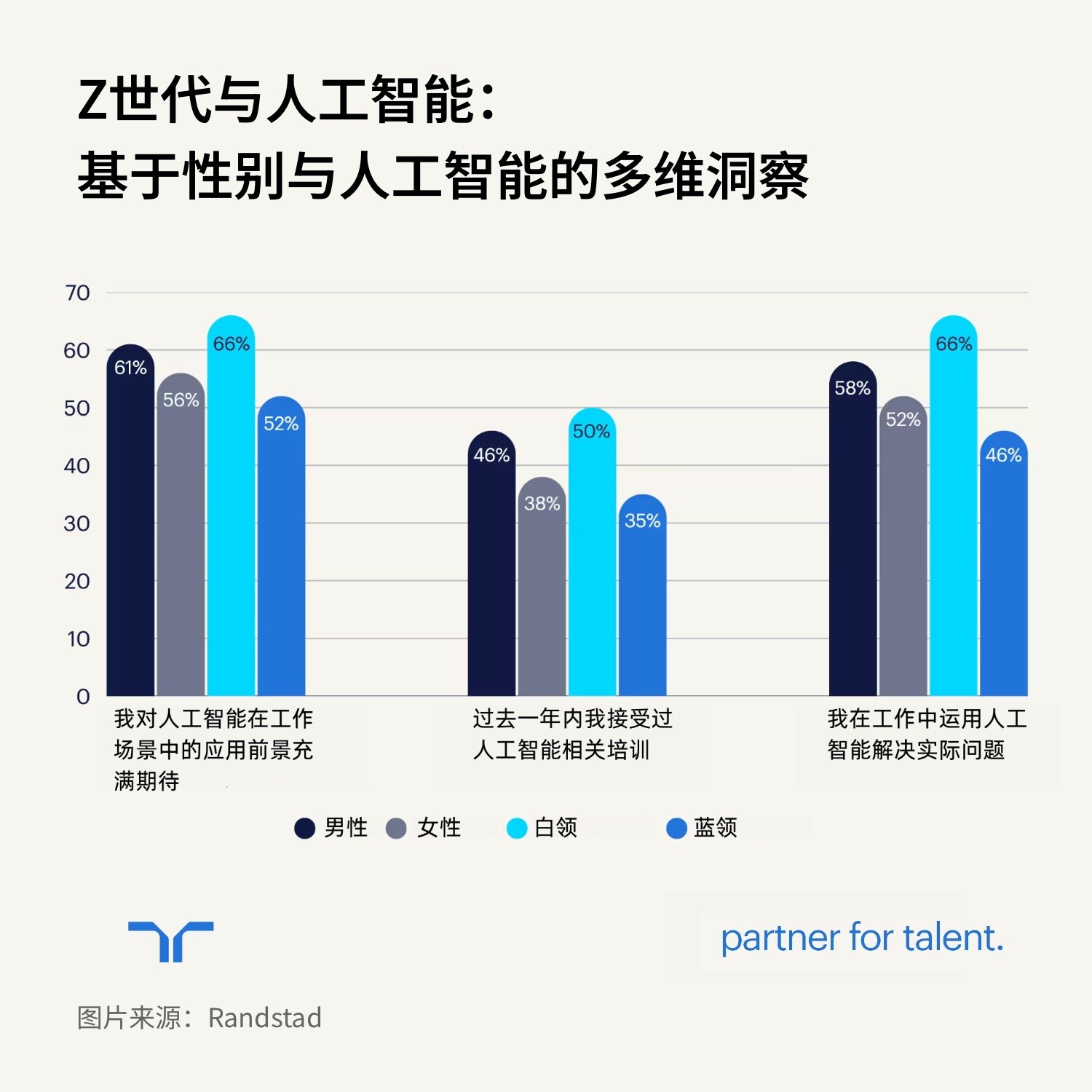 令人鼓舞的是,约五分之三(60%)的Z世代对其潜力感到振奋,该比例虽略低于千禧一代(60%),但已明显高于X世代(52%)与婴儿潮一代(46%)。