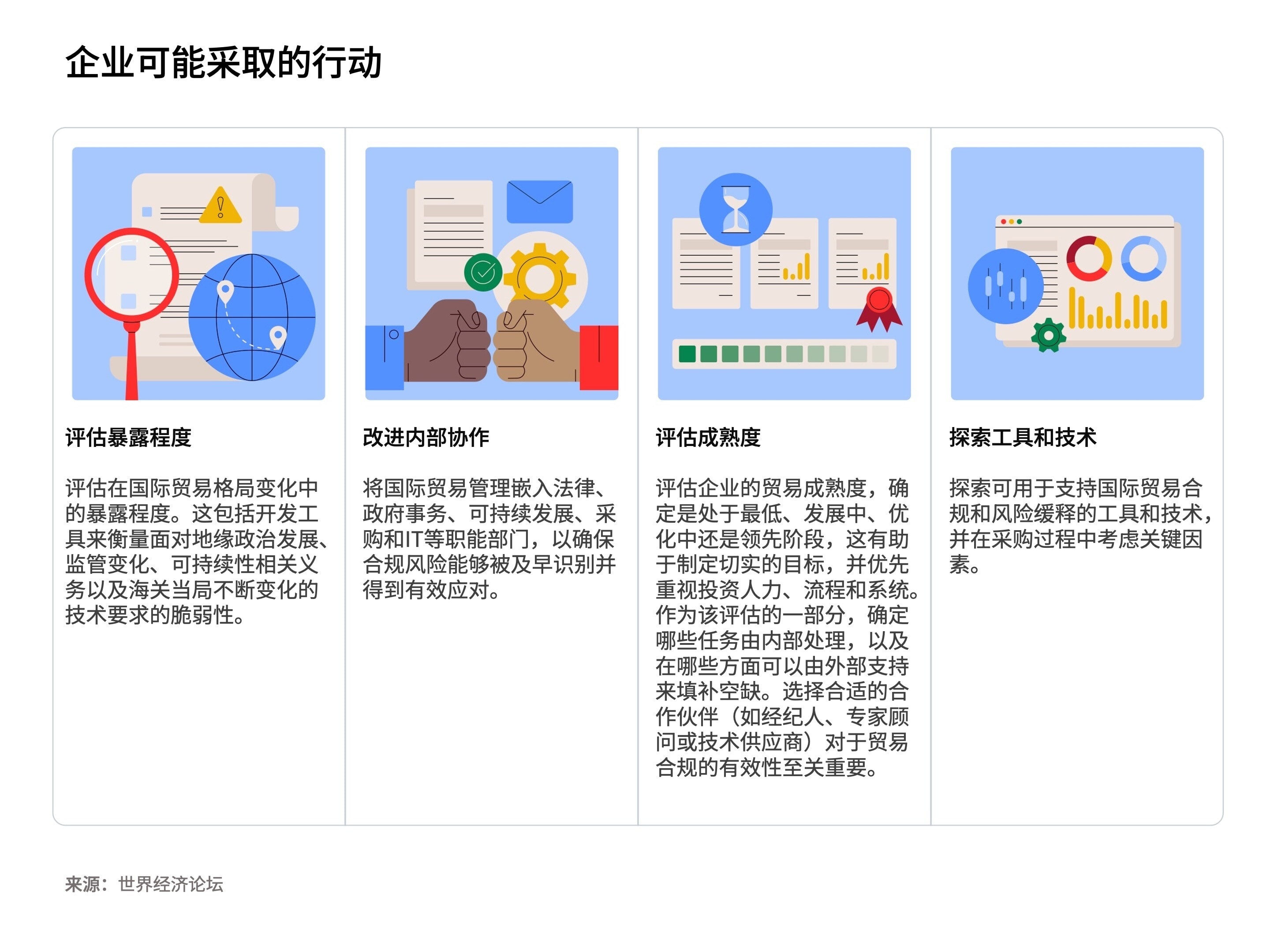 企业正在寻求国际贸易管理方面的实用指导。为此,世界经济论坛与普华永道联合发布了一份新白皮书,即《贸易合规领导力:应对不断变化的全球格局》,提供来自商业贸易领袖的关键见解和工具。