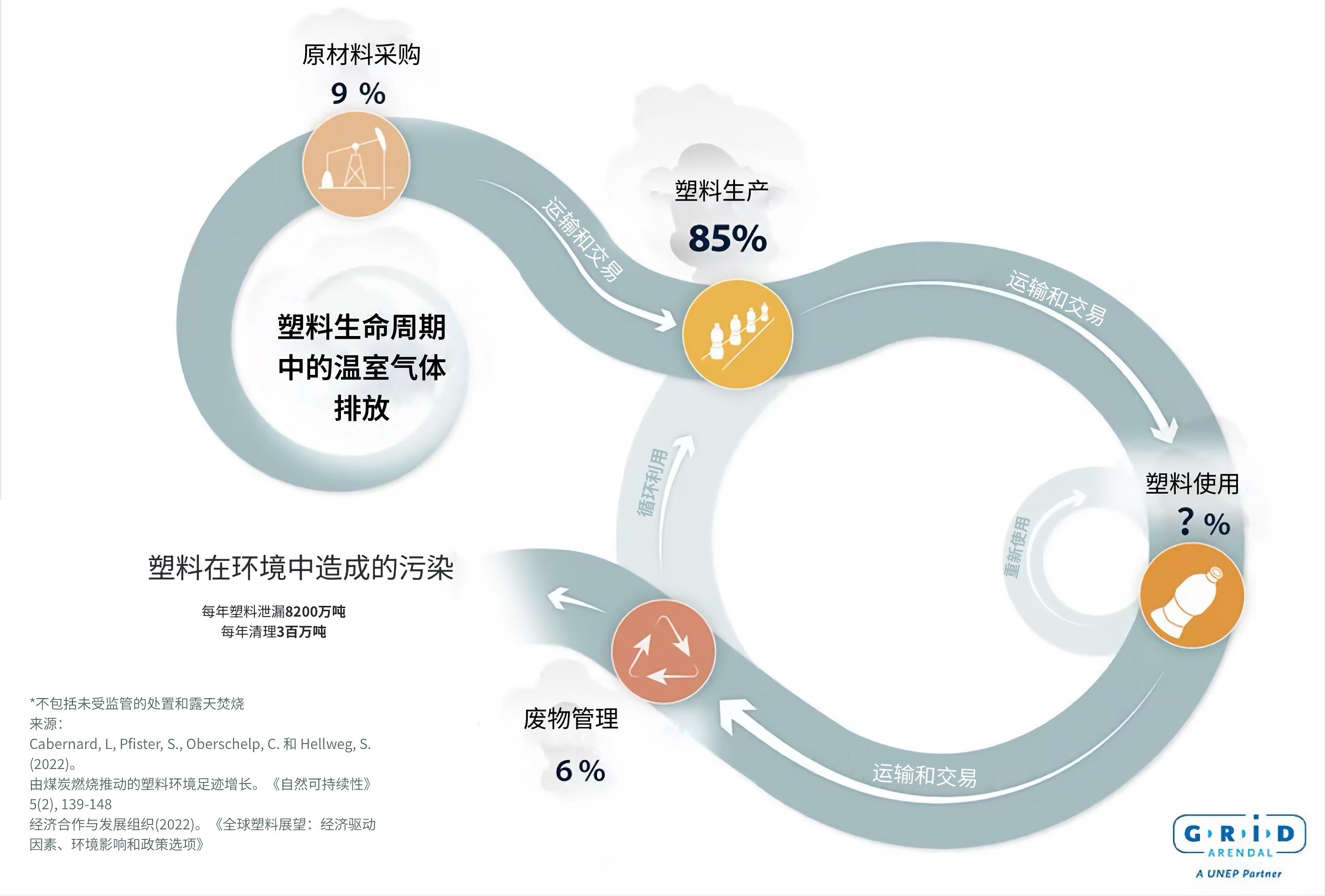 根据联合国和劳伦斯伯克利国家实验室的数据,2019年,塑料造成的温室气体排放量为18亿至22亿吨,约占全球总量的3%至5% 。