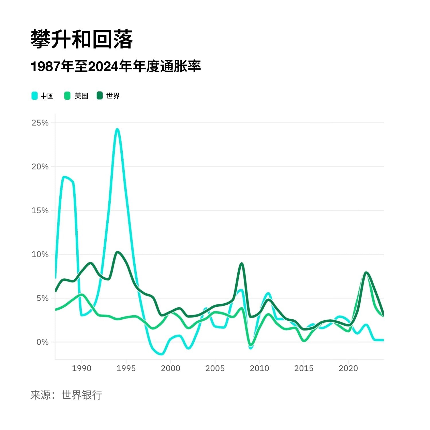 中国并非始终面临通缩问题。1994年,在歉收与经济高速增长的双重压力下,政府将遏制失控通胀列为头等要务。而美国,最近一次通缩危机发生在2009年大衰退时期。