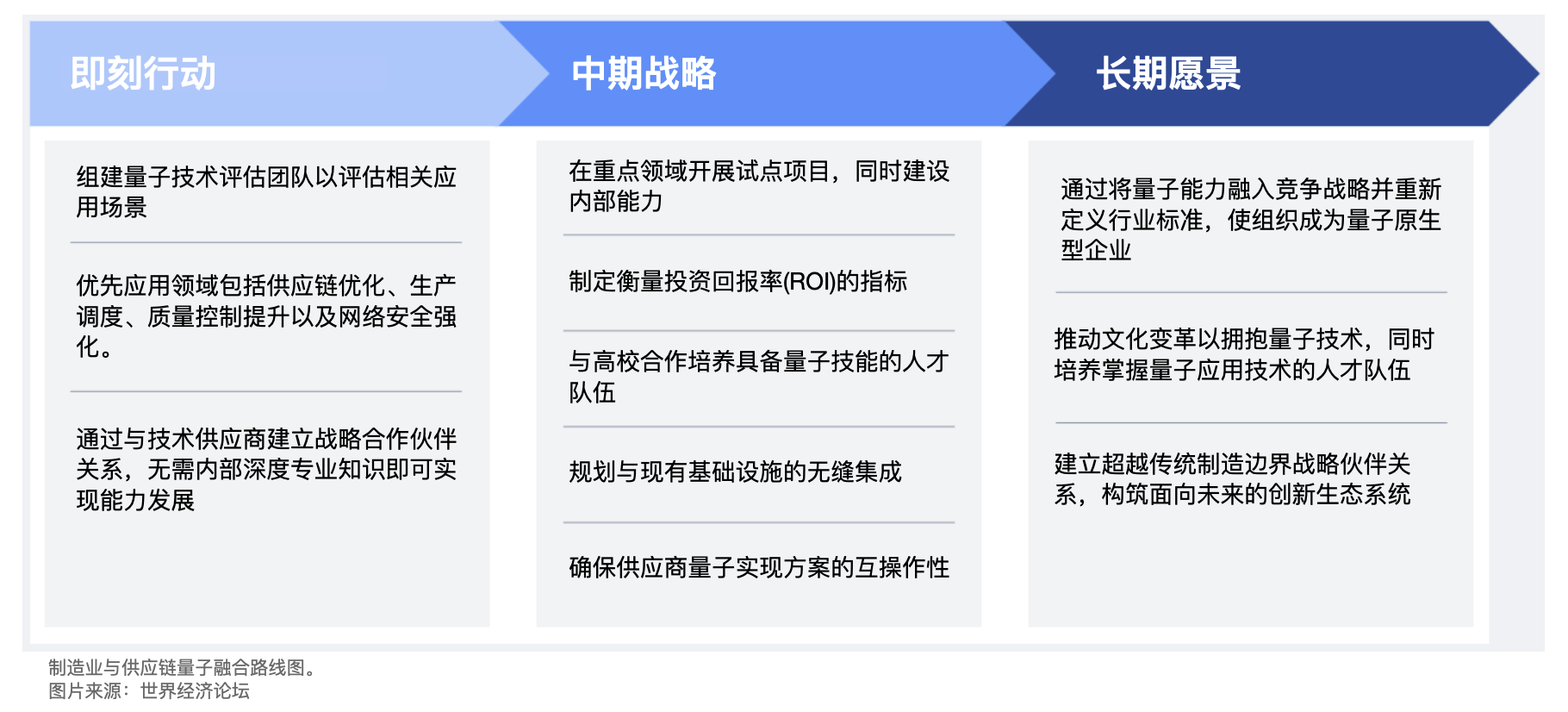 - 世界经济论坛与埃森哲在白皮书《量子技术:先进制造业与供应链的关键机遇》中,共同探讨了量子技术的落地实施策略。