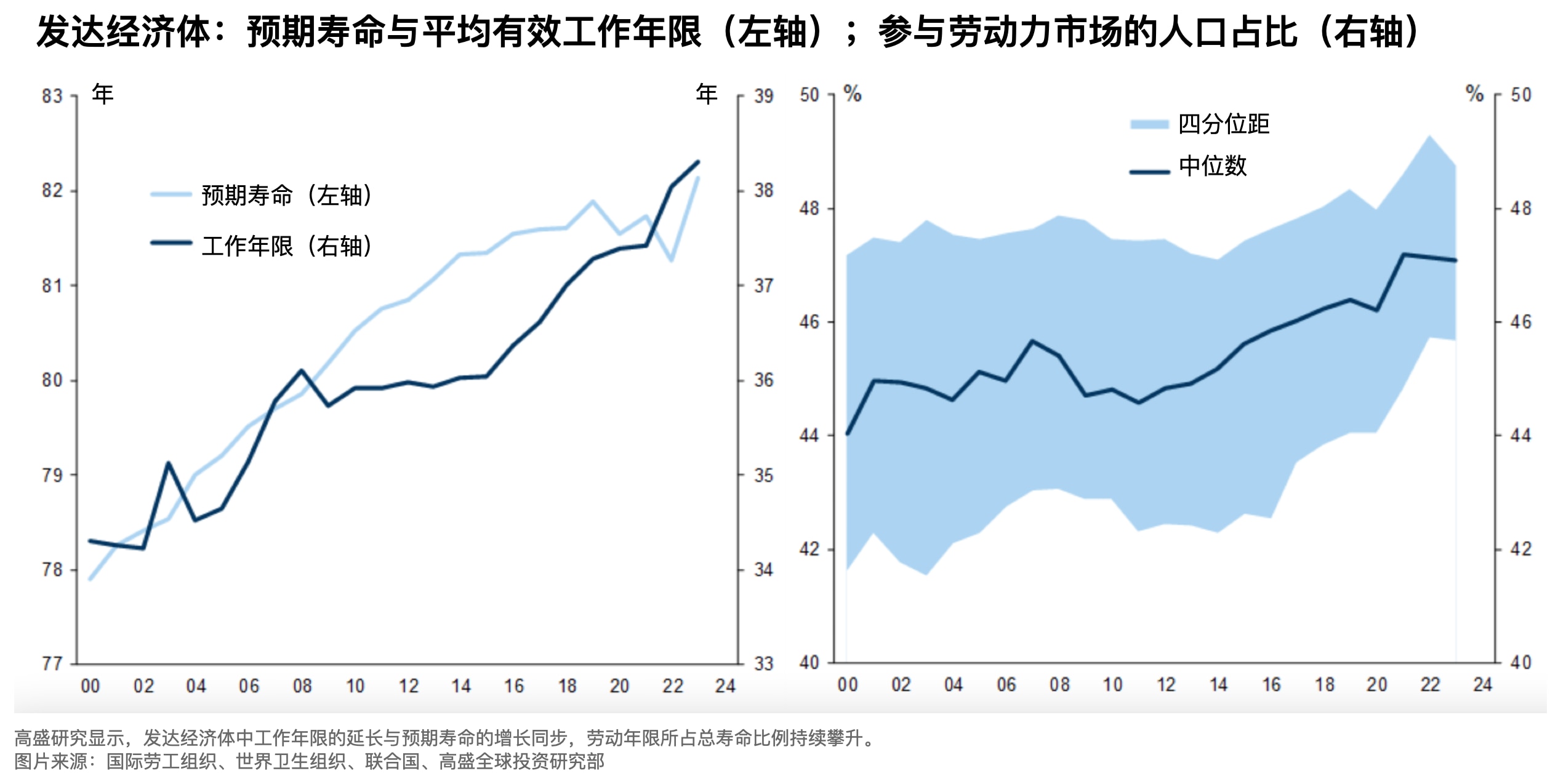 该报告同时指出,女性劳动力参与率的提升,尤其是产后重返职场,同样推动着劳动寿命延长。随着人口持续老龄化,为女性创造更多就业空间既能提振经济,也有助于抵消利率下行压力。