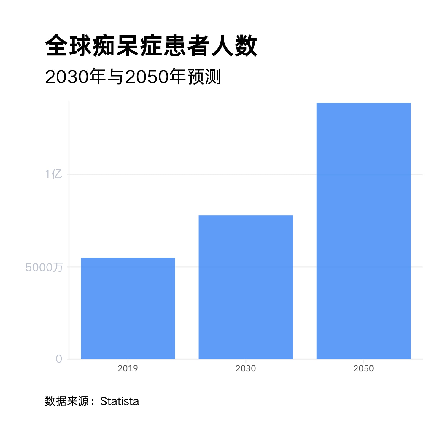 根据世界卫生组织的数据,痴呆症目前是全球第七大死因,也是导致人们残疾和需要照护的主要原因。随着全球各国人口普遍老龄化,痴呆症患者人数预计将急剧攀升——从2021年的5700万增至2050年的约1.39亿。