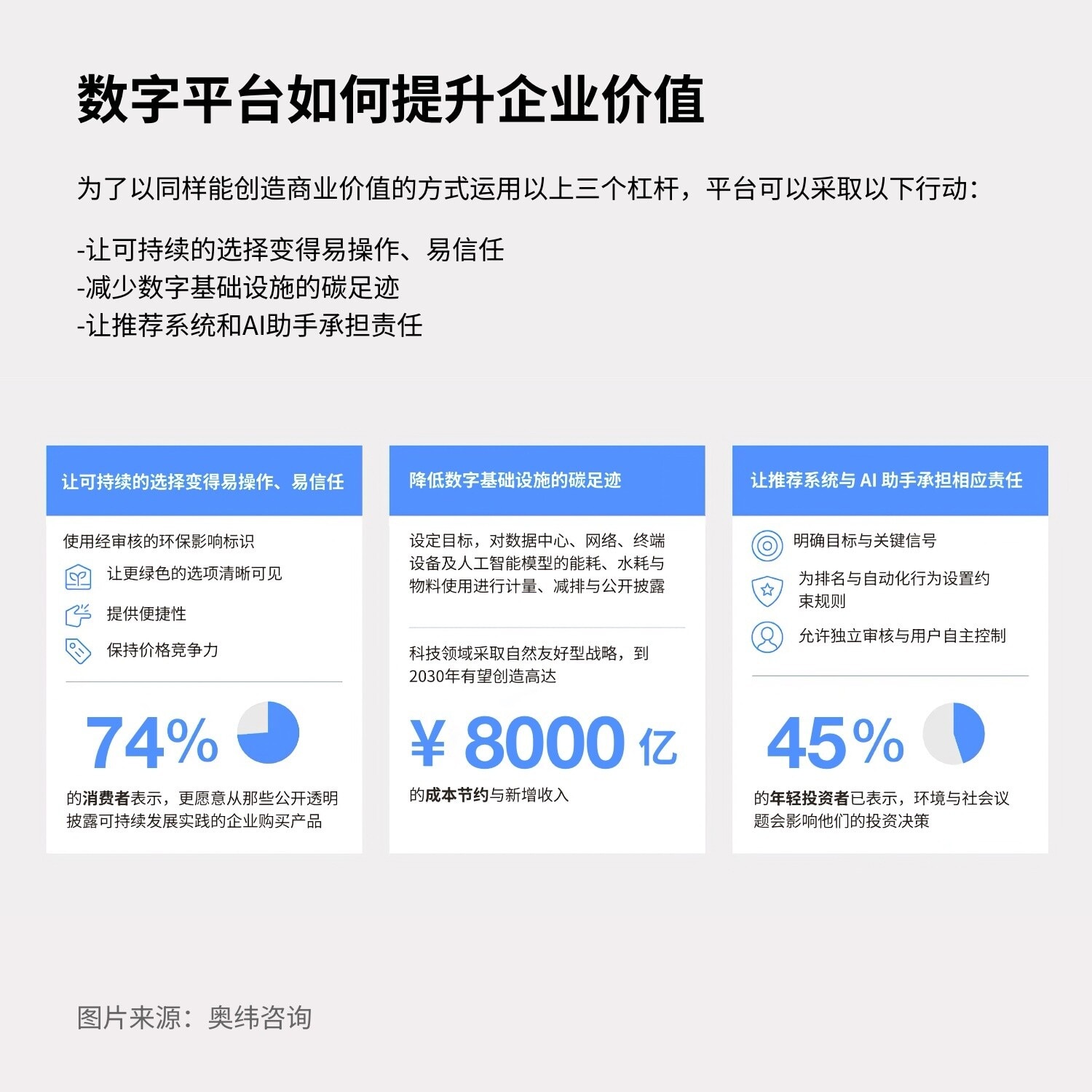 - 让推荐系统和AI助手承担责任:明确排名和自动化操作的目标、关键信号和指导原则,并允许独立审查和用户控制。45%的年轻投资者表示,可持续性问题会影响他们的投资方向。